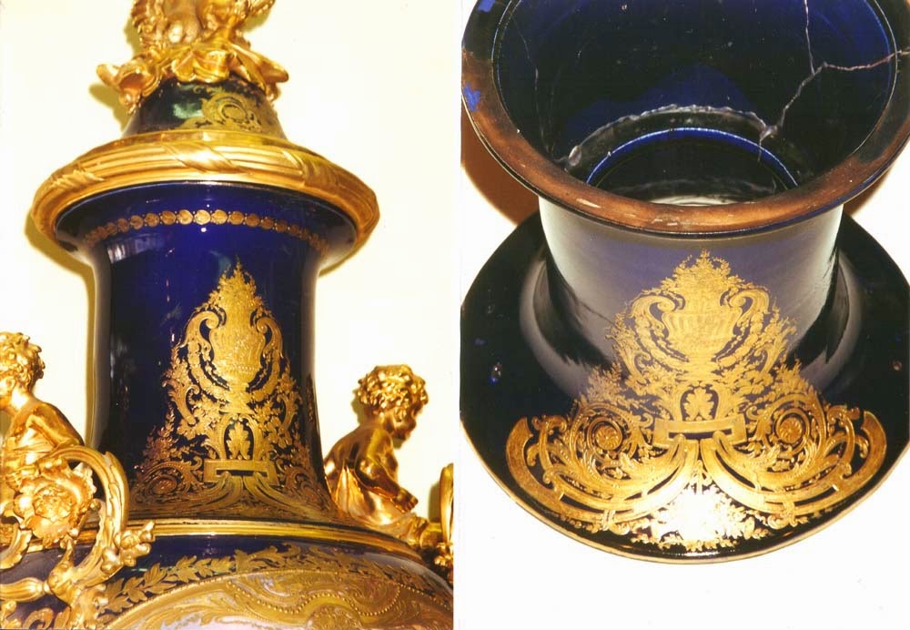 Art Conservation & Restoration. Large and Important Pair of Sèvres cobalt blue Palace Urns. 19th century.